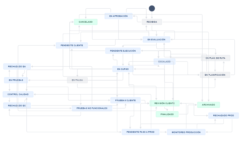 Muestra cómo se lleva a cabo la gestión de las solicitudes desde la óptica del equipo TI.