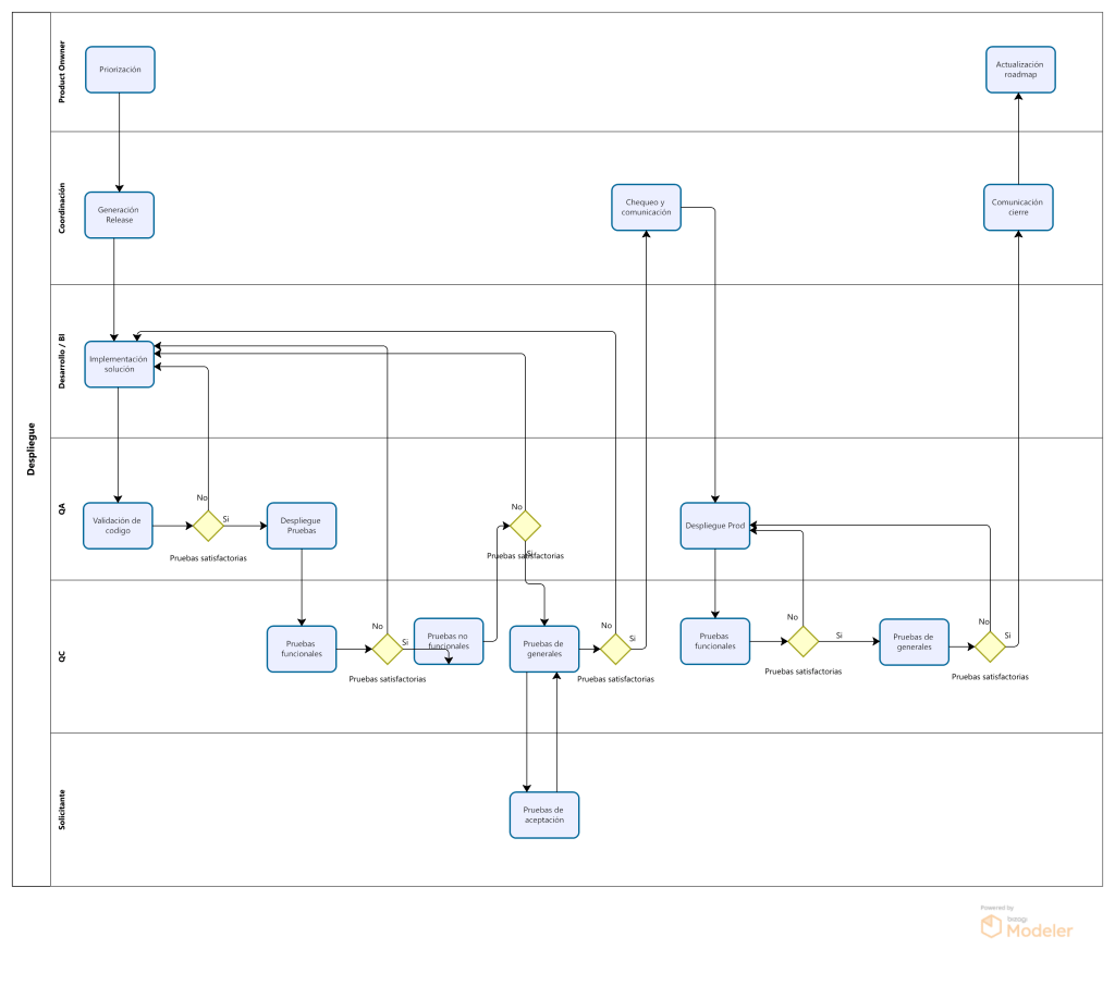 - Cumplimiento, fechas comprometidas, desarrollo, pruebas, etc.